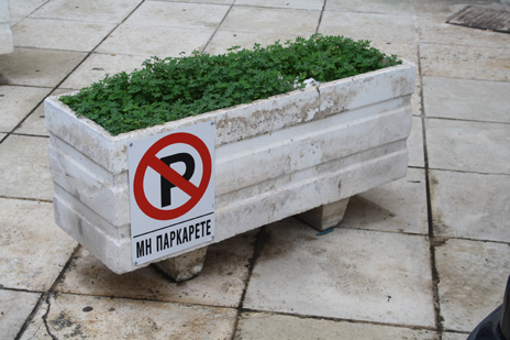 Προφανώς εννοεί μην παρκάρετε μπροστά στη ζαρντινιέρα, αλλά το όλο σκηνικό είναι σουρεαλιστικό, δεν συμφωνείτε; Α, ξεχάσαμε, η φωτό είναι τραβηγμένη στην οδό Καραγιάννη.