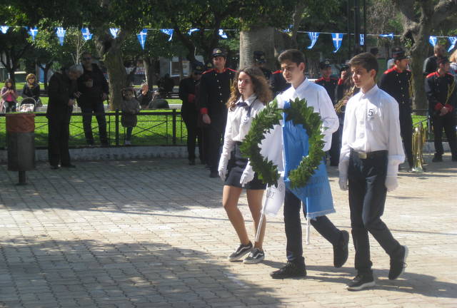 Τα σχολεία της Χαλκίδας εκπροσωπήθηκαν από τους σημαιοφόρους και τους παραστάτες κάθε σχολείου. Στεφάνια κατέθεσαν αντιπροσωπείες μαθητών εκ μέρους νηπιαγωγείων, δημοτικών σχολείων, γυμνασίων και λυκείων.