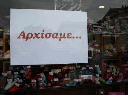 Η πινακίδα " Αρχίσαμε..." στη βιτρίνα του καταστήματος "Στρουμφίτα" εννοεί βεβαίως ότι άρχισαν τις εκπτώσεις στο μαγαζί και είναι αρκούντως ευρηματική. Ωστόσο μας θύμισε κι ένα ανέκδοτο, σχετικό όχι με εκπτώσεις, αλλά με ... αφραγκίες. Ιδού λοιπόν: