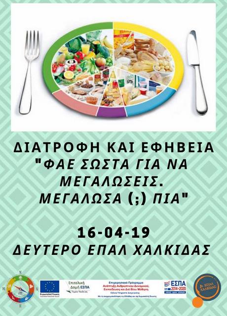Το 2ο ΕΠΑΛ Χαλκίδας διοργανώνει εκδήλωση για την σωστή διατροφή των εφήβων, με τίτλο: "Διατροφή και Εφηβεία: Φάε σωστά για να μεγαλώσεις. "Μεγάλωσα(;) πια".