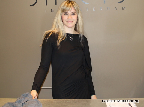Εργάζεται στο κατάστημα ρούχων Nine Streets και μας είπε ότι καθημερινά το μόνο που "φοράει" (εννοείται εκτός από τα ρούχα ρε!) είναι ένα ωραίο χαμόγελο για τους πελάτες.