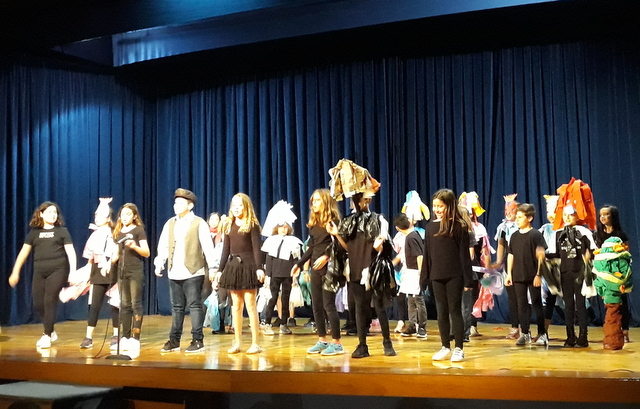 Τα παιδιά παρουσίασαν την παράσταση "Βάζουμε φτερά στο γέλιο" στο θέατρο Παπαδημητρίου και καταχειροκροτήθηκαν από τους συμμαθητές τους και τους υπόλοιπους θεατές.