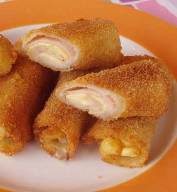 Κόβουμε την κόρα γύρω-γύρω από τις φέτες του τοστ και τις ανοίγουμε με το πλάστη να γίνουν αρκετά επίπεδες. Αλείφουμε με το βούτυρο όλες τις φέτες και τοποθετούμε στην κάθε φέτα από μία φέτα τυρί και γαλοπούλα. Τις τυλίγουμε σφιχτά σε ρολό και τις σταθεροποιούμε με οδοντογλυφίδες. Σε ένα μπολ χτυπάμε το αυγό μαζί με το γάλα και θρυμματίζουμε τις φρυγανιές στο μπλέντερ. Βουτάμε ένα-ένα τα ρολάκια πρώτα στο μείγμα του αυγού και μετά στην τριμμένη φρυγανιά.. Έχουμε βάλει το καλαμποκέλαιο σε τηγάνι να κάψει και ξεκινάμε να τα τηγανίζουμε μέχρι να ροδίσουν κι από τις δύο πλευρές. Τα τοποθετούμε σε απορροφητικό χαρτί κουζίνας να φύγει το περιττό λάδι κι είναι έτοιμα να τα απολαύσουμε ζεστά.