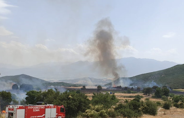 Η δεύτερη φωτιά ξεκίνησε από μετασχηματιστή της ΔΕΗ στον προαύλιο χώρο της μονής της Αγίας Άννας, που είναι στον δρόμο Λαμίας - Δομοκού, κοντά στο δημοτικό κυνοκομείο.