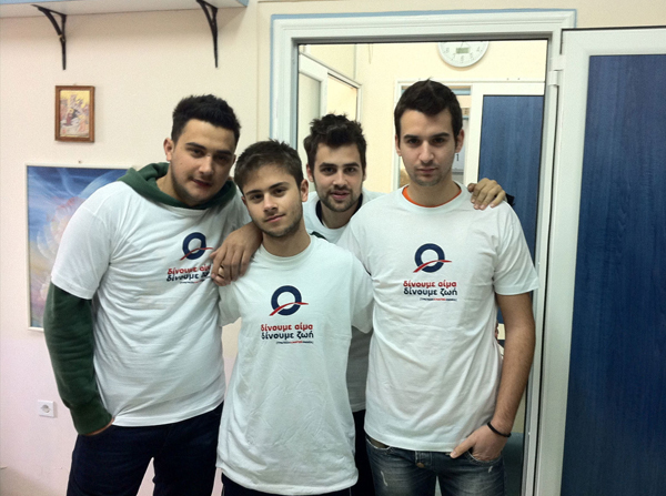 *Στη φωτογραφία, τέσσερις νέοι που συμμετείχαν στην αιμοδοσία.