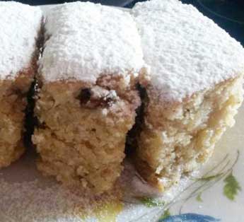 Όταν ψηθεί το αφήνουμε να κρυώσει και κατόπιν πασπαλίζουμε από πάνω με ζάχαρη άχνη.