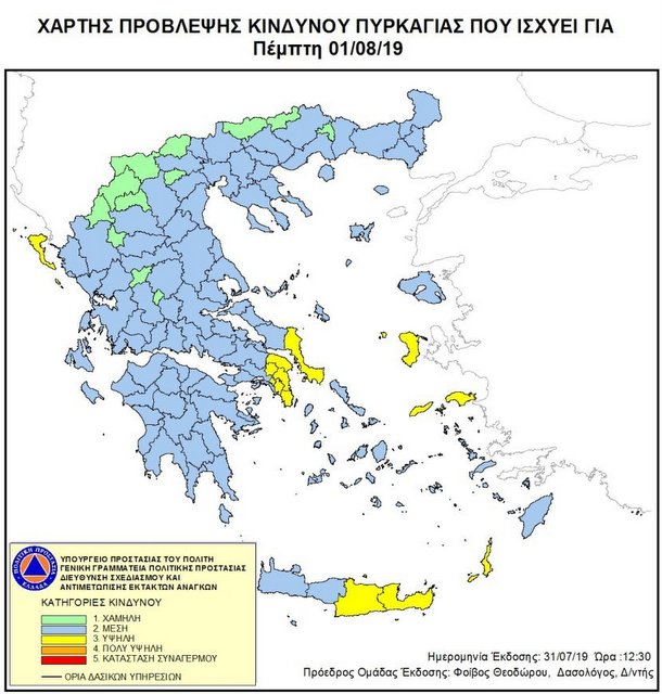 είναι υψηλός ο κίνδυνος πυρκαγιάς για Αττική, Νότιο Εύβοια, Χίο, Σάμο, Ικαρία, Κάσο, Κάρπαθο, Κρήτη και Κέρκυρα.