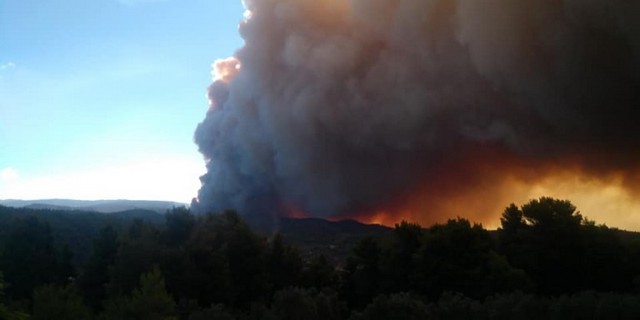 Βίντεο από τη μεγάλη φωτιά στην Εύβοια - Καίγεται πευκοδάσος Natura