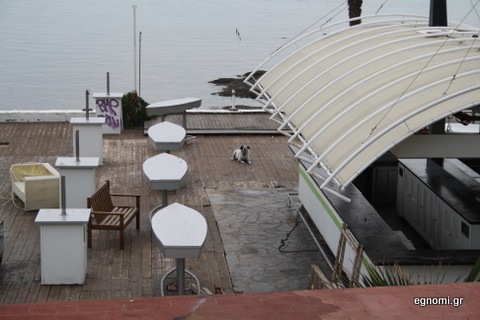 Στην είσοδο του χώρου δίπλα στο Κόκκινο Σπίτι, που επί πολλά χρόνια φιλοξενούσε το εστιατόριο και μπαρ STAVEDO, υπάρχει μια πινακίδα (φωτό δεξιά) που σε τρομάζει. Θες να κατέβεις για μια βόλτα στην προκυμαία και σκέφτεσαι: Ρε μπας και υπάρχει κανένας αγριόσκυλος και μας ξεσκίσει;