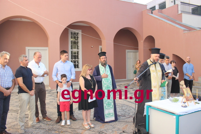 Τον αγιασμό έκαναν οι ιερείς του ναού του Αγίου Νικολάου Ηλίας Αγιαννίτης, Χρυσόστομος Καλύβας και Χαράλαμπος Ταραμίγκος. Σύντομο χαιρετισμό απηύθυναν η διευθύντρια του σχολείου Κική Σιέκρη, ο αντιδήμαρχος τεχνικών έργων Βασίλης Γουρνής και ο περιφερειακός σύμβουλος Κώστας Βαρδακώστας (φωτό κάτω).