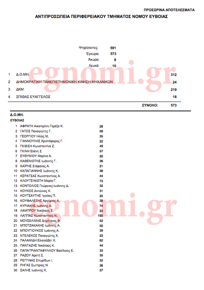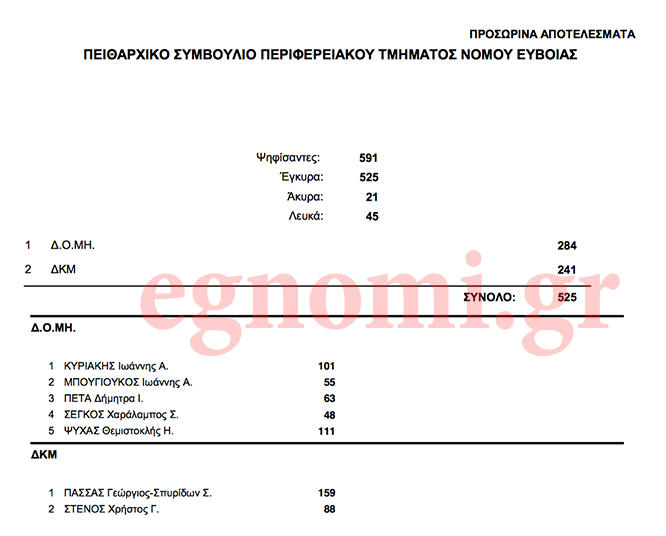 Επισημαίνουμε ότι πρόκειται για προσωρινά αποτελέσματα και θα ακολουθήσει η επικύρωσή τους, για να έχουμε τα οριστικά εκλογικά αποτελέσματα ανά συνδυασμό και υποψήφιο.