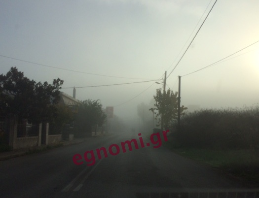 Ειδικά στην περιοχή της Λιανής Άμμου, στην οδό Σαλαμίνος (φωτό) και στα Δύο Δέντρα η ομίχλη είναι έντονη. Ιδιαίτερη προσοχή για τους οδηγούς οχημάτων.