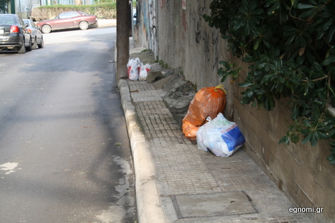 Δυστυχώς στην οδό Βώκου δεν υπάρχει εκκλησία και όπως βλέπετε στις άλλες δύο φωτό δεν υπάρχουν και κάδοι, με αποτέλεσμα οι σκουπιδοσακούλες να ... στολίζουν τα κάγκελα της πυλωτής και το πεζοδρόμιο.