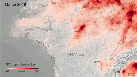 Σύμφωνα με τα στοιχεία των δορυφόρων παρακολούθησης της ατμόσφαιρας, η ατμοσφαιρική μόλυνση έχει μειωθεί στις αστικές περιοχές της Ευρώπης μετά την επιβολή των μέτρων περιορισμού για την καταπολέμηση του φονικού ιού.
