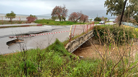 Κατάρρευση της γέφυρας που βρίσκεται στον παραλιακό δρόμο στον Κάραβο Αλιβερίου, προς την παραλία Ποντικού, προκάλεσε η κακοκαιρία.
