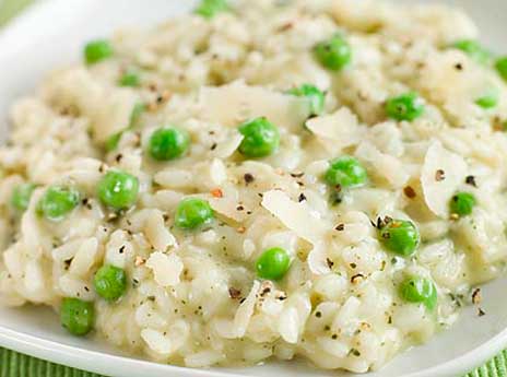 Φράζετε το ρύζι, το στραγγίζετε, γαρνίρετε με τον αρακά. Σερβίρεται ζεστό.