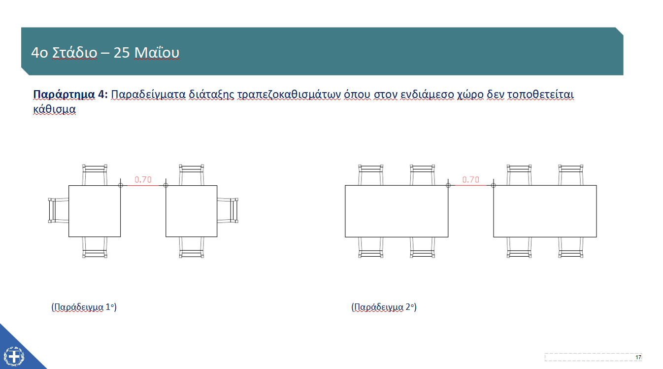 - Η υπαίθρια επιφάνεια είναι το εμβαδόν της επιφάνειας εκτός του φυσικού καταστήματος ενώ η εσωτερική ημιυπαίθρια επιφάνεια είναι η επιφάνεια εντός του καταστήματος που δύναται να αναπτυχθούν τραπεζοκαθίσματα.