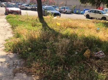 Το γκαζόν έχει μείνει ακούρευτο εδώ και πολύ καιρό, ενώ επικρατεί ένα σκουπιδομάνι, όπως μπορείτε να δείτε και στις φωτογραφίες, αφού οι περαστικοί έχουν πετάξει ένα σωρό σκουπίδια στο παρκάκι, στο οποίο επιπλέον υπάρχουν πολλές ακαθαρσίες ζώων.