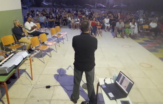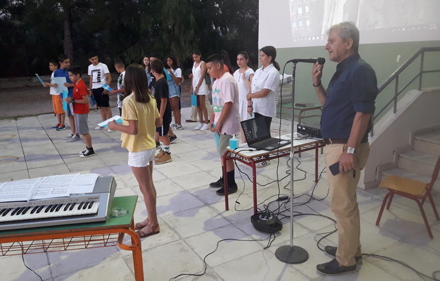 Ο δάσκαλός τους Γιάννης Σακαβάρας, η μουσικός του Σχολείου Παυλίνα Ρέντα, ο Διευθυντής Γιάννης Μούρτζος και οι μαθητές της πέμπτης τάξης οργάνωσαν μια γιορτή για να τους αποχαιρετήσουν.