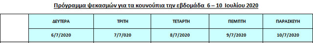 Από την Γενική Διεύθυνση Δημόσιας Υγείας και Κοινωνικής Μέριμνας της Περιφέρειας Στερεάς Ελλάδας ανακοινώθηκε το πρόγραμμα των ψεκασμών για τα κουνούπια, από την Δευτέρα 6 μέχρι την Παρασκευή 10 Ιουλίου.