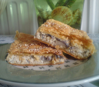Αφήνουμε τη μανιταρόπιτα να σταθεί για 10′ και μετά κόβουμε σε κομμάτια.