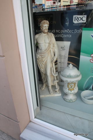 Δεσπόζει ο πατέρας της Ιατρικής στη βιτρίνα του φαρμακείου.