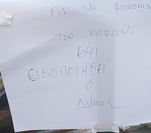 Προφανώς το σημείωμα είχε τοποθετήσει ο ιδιοκτήτης του καταστήματος (πρώην τυροπιτάδικο), που ανακαινίζεται, για να γλιτώσει το "κράξιμο" από τους περαστικούς.