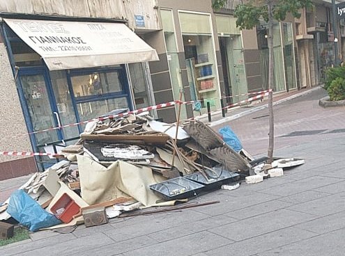 Την εικόνα που βλέπετε στη φωτογραφία αντίκρυζαν οι διαβάτες, σε κεντρικότατο σημείο της Χαλκίδας, πίσω από το Δικαστικό Μέγαρο της πόλης, στην αρχή του πεζόδρομου της Αβάντων, μπροστά σε υπό ανακαίνιση κατάστημα.