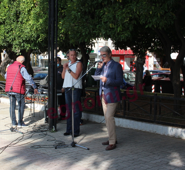 Κατέθεσαν στέφανα στο μνημείο πεσόντων στην πλατεία του Αγίου Νικολάου Χαλκίδας στον πρώτο covid εορτασμό της εθνικής επετείου.
