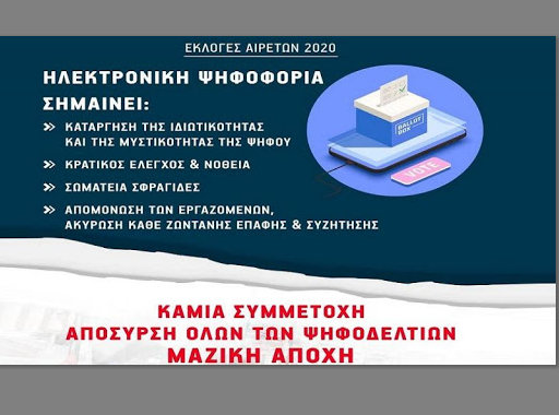 Ακόμα όμως και να τολμήσει να αποπειραθεί την πραγματοποίησή τους, καλούμε όλους τους εκπαιδευτικούς να απέχουν από την ηλεκτρονική ψευδο-ψηφοφορία.»