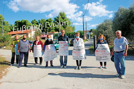 Πλακάτ διαμαρτυρίας σήκωσαν στο φακό της «Γνώμης» οι κάτοικοι Παναγιώτα Θεοφανίδου, Άννα Μπαχατίρογλου, Ζαχαρούλα Αβράμη,