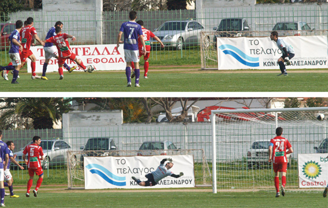 Οπως βλέπετε, στην αρχή της φάσης ο Σέγγος βρίσκεται στο βάθος δεξιά ενώ η μπάλα παίζεται μπροστά από τη μεγάλη περιοχή των φιλοξενούμενων και μάλιστα καλύπτεται από τον αρχηγό του Ρουφ. Η φάση συνεχίζεται με το Βλαχόπουλο να μονομαχεί με έναν αντίπαλο και μετά (στη μεσαία φωτό) η μπάλα έχει φθάσει στον αρχηγό των Ψαχνών (που είναι και πάλι καθαρά πίσω από τους αμυντικούς) κι αυτός σουτάρει στέλνοντας την μπάλα στα δίχτυα (ο Βλαχόπουλος φαίνεται να είναι πιο μπροστά, αλλά δεν επηρεάζει καθόλου).