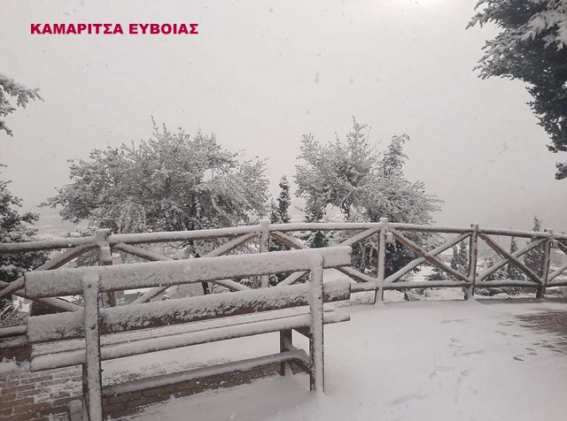ΛΕΑΝΔΡΟΣ: Νέες εικόνες από χιόνια στην Εύβοια (UPD)