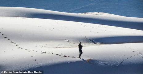 Χιόνι σκέπασε την έρημο της Σαχάρας, τις τελευταίες ώρες, καθώς και σε αρκετές περιοχές της Σαουδικής Αραβίας. Η θερμοκρασία έκανε ...βουτιά στους -2 βαθμούς Κελσίου, ενώ το χιόνι σε συνδυασμό με την άμμο, δημιούργησαν φανταστικές εικόνες.