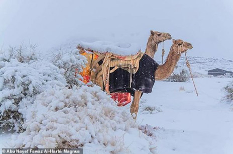 Τώρα το χιόνι έχει σκεπάσει τα πάντα και οι κάτοικοι της περιοχής απολαμβάνουν το θέαμα, όπως και οι καμήλες, οι οποίες φαίνεται ότι τελικά αντέχουν το πολικό ψύχος.