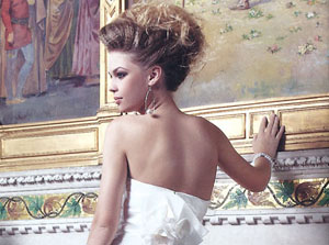 2. Ρομαντικό νυφικό με κεντήματα, δαντέλα και μακριά ουρά. Ο τεράστιος φιόγκος στη μέση κλέβει την παράσταση και δίνει μία νότα κλασικής αρχοντιάς. Ταιριάζει σε ρομαντικούς και παραμυθένιους γάμους. (Συλλογή άνοιξη-καλοκαίρι 2011-Νυφικές Δημιουργίες)