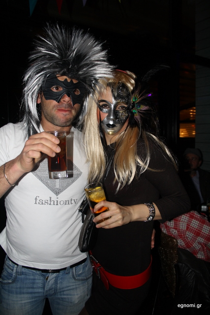 Απόδειξη του ότι η απλότητα μπορεί να κάνει τη διαφορά είναι το ζεύγος Αντώνης Σαλλής και Κατερίνα Χρήστου. Δεν έχουν ντυθεί κάτι το ιδιαίτερο, αλλά πολύ ιδιαίτερη και πολύ ωραία είναι η μάσκα της Κατερίνας που προσδίδει μυστήριο στην έκφρασή της.