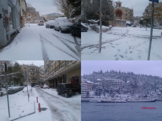Στη φωτογραφία, στιγμιότυπα από την χιονόπτωση του 2017, στη Χαλκίδα.