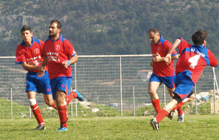 Δεν τα κατάφεραν όμως και ο Γιάννης Κατσαρής που είχε μπει σαν αλλαγή βρήκε ...άνοιγμα στα μετόπισθεν της αντιπάλου και έκανε το 3-1 δίνοντας το έναυσμα για νέους πανηγυρισμούς (φωτό πάνω) στις καθυστερήσεις.