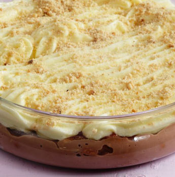 Σπάμε τα μπισκότα σε μικρά κομμάτια. Κρατάμε λίγα στην άκρη για γαρνίρισμα. Φτιάχνουμε χωριστά τα δύο είδη κρέμας χρησιμοποιώντας την αντίστοιχη ποσότητα γάλακτος. Ανακατεύουμε τα σπασμένα μπισκότα μέσα στη σοκολατένια κρέμα. Απλώνουμε ομοιόμορφα το μείγμα σε ένα πυρέξ. Βάζουμε την κρέμα ζαχαροπλαστικής σε ένα κορνέ και κάνουμε με αυτή σχέδια πάνω στο σοκολατένιο μείγμα. Εναλλακτικά, την απλώνουμε σε στρώση. Θρυμματίζουμε τα μπισκότα που έχουμε κρατήσει στην άκρη. Και τα πασπαλίζουμε στην επιφάνεια του γλυκού. Το αφήνουμε στο ψυγείο να κρυώσει για τουλάχιστον 3 ώρες προτού σερβίρουμε.