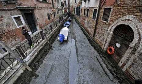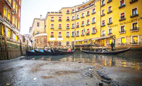 Η Βενετία είναι ένας αγαπημένος και δημοφιλής τουριστικός προορισμός λόγω της ιστορίας της, των έργων τέχνης, της αρχιτεκτονικής, αλλά κυρίως των καναλιών της. Από χθες όμως, τα φημισμένα κανάλια στέρεψαν και τα ύδατα υποχώρησαν τόσο που η εικόνα της φημισμένης Βενετίας δεν θυμίζει σε τίποτα τις βόλτες με τις γόνδολες.