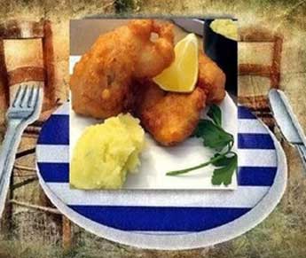 Σερβίρουμε με πατάτες τηγανητές και σκορδαλιά.