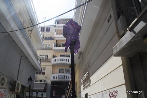 Όπως βλέπετε στη φωτογραφία αριστερά στον ένα φανοστάτη έχουν τοποθετήσει ένα κομμάτι ύφασμα. Τώρα ποια είναι η σκοπιμότητα θα σας γελάσουμε.