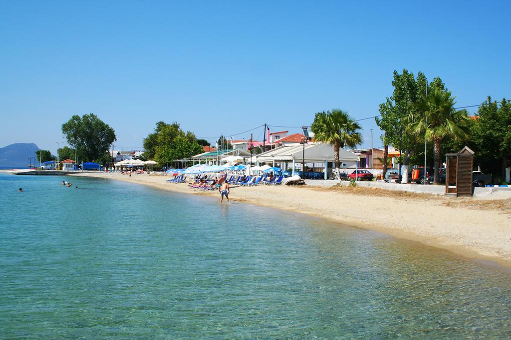 Με θέα στον βόρειο Ευβοϊκό κόλπο μπορείτε να απολαύσετε το μπάνιο σας, είτε επιλέγοντας τις ξαπλώστρες των καταστημάτων, είτε να αράξετε με τα δικά σας comfort.