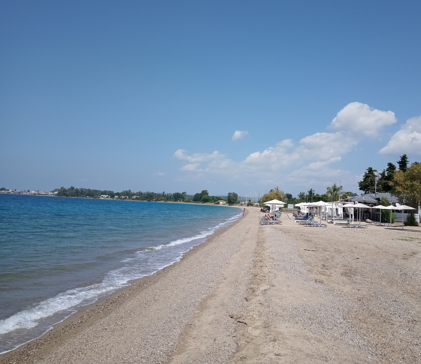Μεγάλη ακτογραμμή και αμμουδερή παραλία. Ιδανική για ρακέτες και beach soccer. Η θάλασσα είναι σχεδόν πάντα «λάδι».