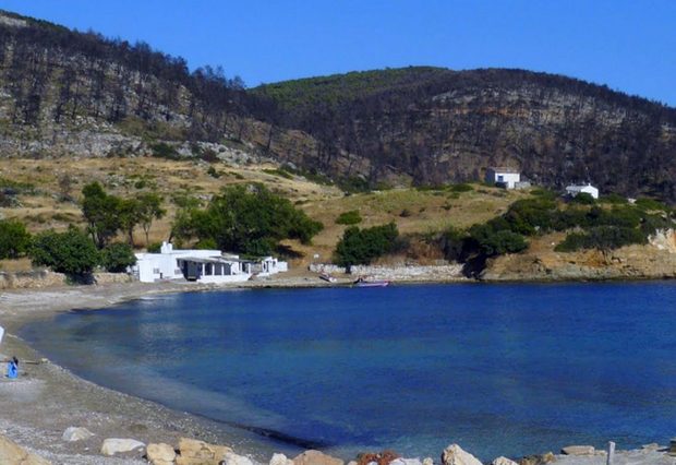 Στο δυτικό τμήμα του νησιού βρίσκεται η παραλία Πεύκος (είναι εδώ).