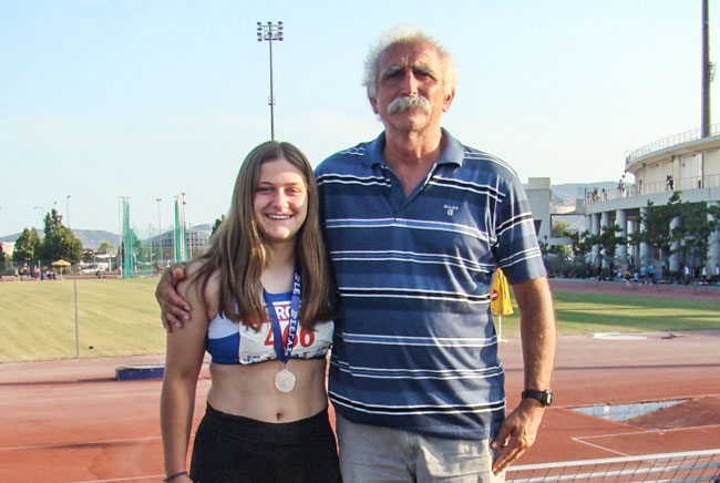 Η 17χρονη ρίπτρια (στη φωτό δίπλα στον προπονητή της Πέτρο Γεωργίου) με ατομικό ρεκόρ (41.44 μ.) κέρδισε τη δεύτερη θέση στη Δισκοβολία και επιλέχθηκε να εκπροσωπήσει την Ελλάδα στη διεθνή συνάντηση που θα γίνει μεταξυ των Εθνικών ομαδων στις 21-22 Ιουλίου στην Κύπρο.