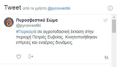 Συναγερμός έχει σημάνει στην Πυροσβεστική Υπηρεσία, καθώς νέα φωτιά ξέσπασε στην Εύβοια, το πρωί του Σαββάτου 14 Αυγούστου και συγκεκριμένα στις Πετριές του Δήμου Κύμης Αλιβερίου.