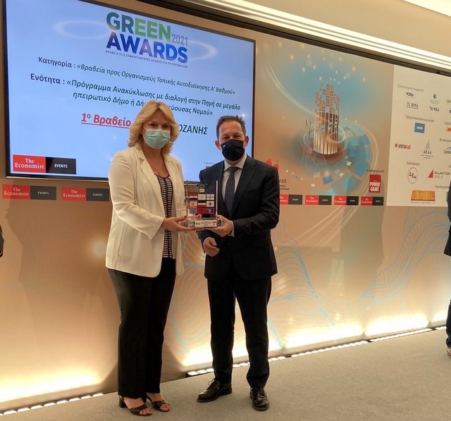 Το πρώτο βραβείο στα Green Awards, που διοργανώθηκαν από το Economist και το Power Game στη Θεσσαλονίκη, απέσπασε ο Δήμος Χαλκιδέων στην Ενότητα «Πρόγραμμα Ανακύκλωσης με διαλογή στην Πηγή σε μεγάλο ηπειρωτικό Δήμο ή Δήμο πρωτεύουσας Νομού».