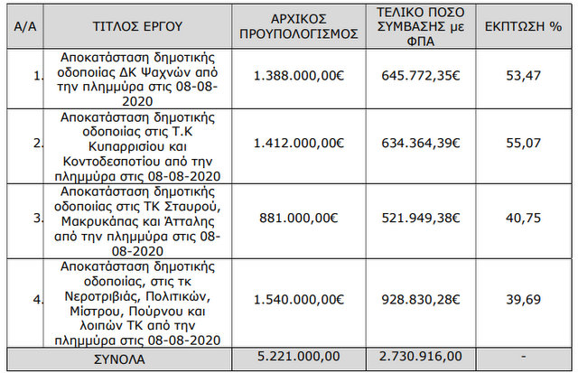 Ολοκληρώθηκαν οι διαδικασίες δημοπράτησης των έργων και υπογράφηκαν οι συμβάσεις του Δήμου Διρφύων- Μεσσαπίων για αποκατάσταση της δημοτικής οδοποιίας από τις καταστροφές που προξένησε η θεομηνία "Θάλεια".